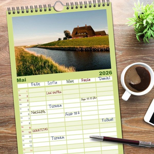 PRAKTISCH - übersichtlicher Familienkalender mit 5 Spalten für bis zu 5 Personen für mehr Struktur im Alltag - so bleiben alle Termine im Blick!ÜBERSICHTLICH - mit farblich getrennten Wochen- und Feiertagen. Die einzelnen Felder bieten genügend Platz für Eintragungen. So macht Organisieren Spaß!FANTASTISCHE BILDER - Dieser Planer ist nicht nur eine nützliche Hilfe im Alltag, sondern schmückt gleichzeitig Ihr Zuhause. Ideal auch als Geschenk.FÜR ALLE STIFTE GEEIGNET - ganz egal, ob Sie lieber mit Kugelschreiber oder Bleistift schreiben.NACHHALTIG - deutliche Abfallreduzierung durch bedarfsgerechte Einzelstückfertigung, umweltfreundliches FSC-zertifiziertes Papier, Produktion in Deutschland, klimabewusste Logistik.Hallig Hooge - zwischen Himmel und Erde von Autor(in): Jürgen Lüftner
