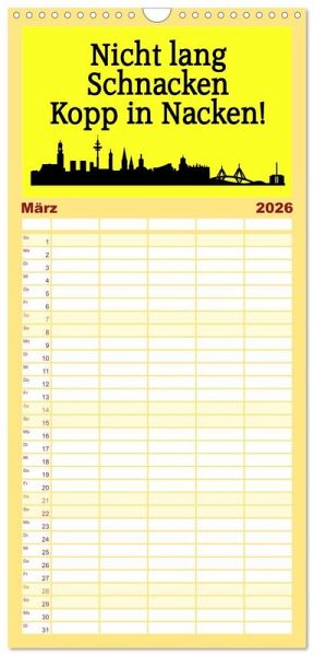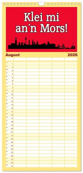 PRAKTISCH - übersichtlicher Familienkalender mit 5 Spalten für bis zu 5 Personen für mehr Struktur im Alltag - so bleiben alle Termine im Blick!ÜBERSICHTLICH - mit farblich getrennten Wochen- und Feiertagen. Die einzelnen Felder bieten genügend Platz für Eintragungen. So macht Organisieren Spaß!FANTASTISCHE BILDER - Dieser Planer ist nicht nur eine nützliche Hilfe im Alltag, sondern schmückt gleichzeitig Ihr Zuhause. Ideal auch als Geschenk.FÜR ALLE STIFTE GEEIGNET - ganz egal, ob Sie lieber mit Kugelschreiber oder Bleistift schreiben.NACHHALTIG - deutliche Abfallreduzierung durch bedarfsgerechte Einzelstückfertigung, umweltfreundliches FSC-zertifiziertes Papier, Produktion in Deutschland, klimabewusste Logistik.12 Sprüche aus dem hohen Norden von Autor(in): Chris D.