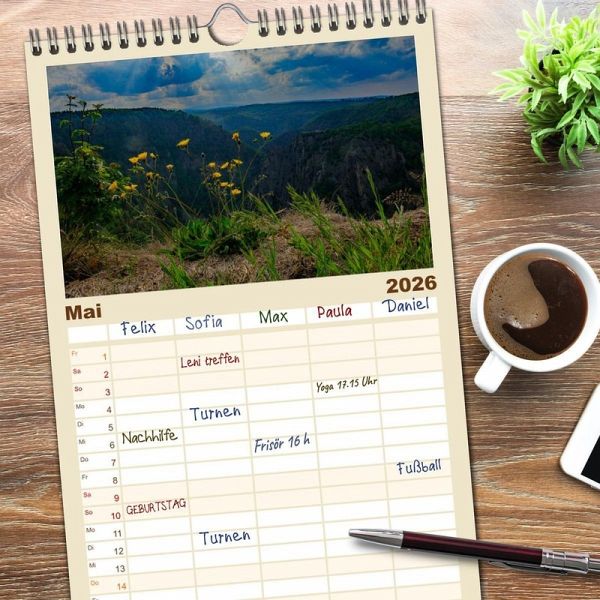 PRAKTISCH - übersichtlicher Familienkalender mit 5 Spalten für bis zu 5 Personen für mehr Struktur im Alltag - so bleiben alle Termine im Blick!ÜBERSICHTLICH - mit farblich getrennten Wochen- und Feiertagen. Die einzelnen Felder bieten genügend Platz für Eintragungen. So macht Organisieren Spaß!FANTASTISCHE BILDER - Dieser Planer ist nicht nur eine nützliche Hilfe im Alltag, sondern schmückt gleichzeitig Ihr Zuhause. Ideal auch als Geschenk.FÜR ALLE STIFTE GEEIGNET - ganz egal, ob Sie lieber mit Kugelschreiber oder Bleistift schreiben.NACHHALTIG - deutliche Abfallreduzierung durch bedarfsgerechte Einzelstückfertigung, umweltfreundliches FSC-zertifiziertes Papier, Produktion in Deutschland, klimabewusste Logistik.Der Harz lockt den Besucher durch seine Natur, Kultur und Geschichte. von Autor(in): Klaus Fritsche