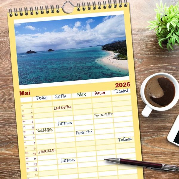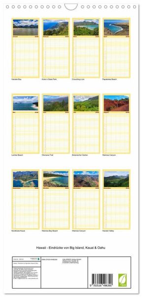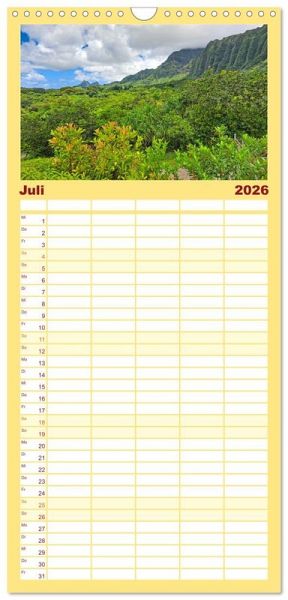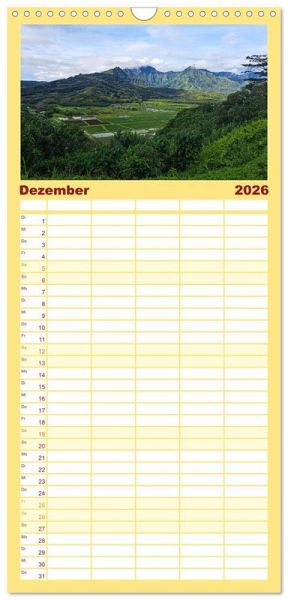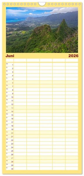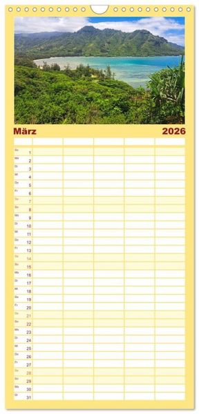 PRAKTISCH - übersichtlicher Familienkalender mit 5 Spalten für bis zu 5 Personen für mehr Struktur im Alltag - so bleiben alle Termine im Blick!ÜBERSICHTLICH - mit farblich getrennten Wochen- und Feiertagen. Die einzelnen Felder bieten genügend Platz für Eintragungen. So macht Organisieren Spaß!FANTASTISCHE BILDER - Dieser Planer ist nicht nur eine nützliche Hilfe im Alltag, sondern schmückt gleichzeitig Ihr Zuhause. Ideal auch als Geschenk.FÜR ALLE STIFTE GEEIGNET - ganz egal, ob Sie lieber mit Kugelschreiber oder Bleistift schreiben.NACHHALTIG - deutliche Abfallreduzierung durch bedarfsgerechte Einzelstückfertigung, umweltfreundliches FSC-zertifiziertes Papier, Produktion in Deutschland, klimabewusste Logistik.Schönheit und Vielfalt der hawaiianischen Inseln von Autor(in): Sabrina Twele