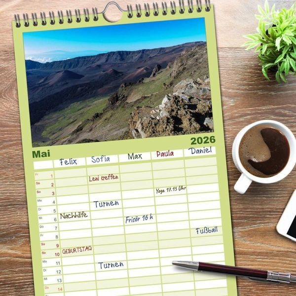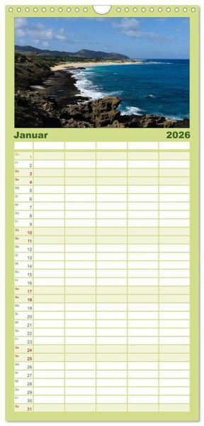 PRAKTISCH - übersichtlicher Familienkalender mit 5 Spalten für bis zu 5 Personen für mehr Struktur im Alltag - so bleiben alle Termine im Blick!ÜBERSICHTLICH - mit farblich getrennten Wochen- und Feiertagen. Die einzelnen Felder bieten genügend Platz für Eintragungen. So macht Organisieren Spaß!FANTASTISCHE BILDER - Dieser Planer ist nicht nur eine nützliche Hilfe im Alltag, sondern schmückt gleichzeitig Ihr Zuhause. Ideal auch als Geschenk.FÜR ALLE STIFTE GEEIGNET - ganz egal, ob Sie lieber mit Kugelschreiber oder Bleistift schreiben.NACHHALTIG - deutliche Abfallreduzierung durch bedarfsgerechte Einzelstückfertigung, umweltfreundliches FSC-zertifiziertes Papier, Produktion in Deutschland, klimabewusste Logistik.Die schönsten Bilder der Inseln Oahu und Maui von Autor(in): Rolf Hitzbleck