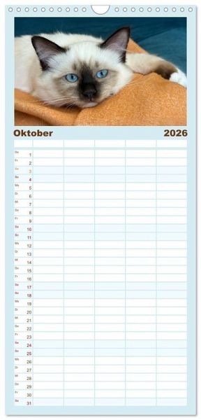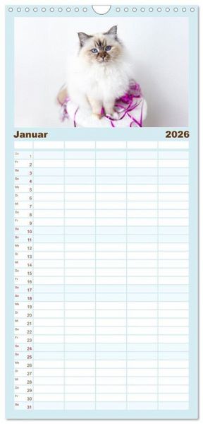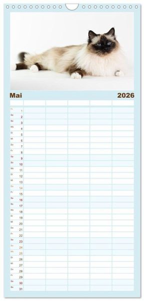 PRAKTISCH - übersichtlicher Familienkalender mit 5 Spalten für bis zu 5 Personen für mehr Struktur im Alltag - so bleiben alle Termine im Blick!ÜBERSICHTLICH - mit farblich getrennten Wochen- und Feiertagen. Die einzelnen Felder bieten genügend Platz für Eintragungen. So macht Organisieren Spaß!FANTASTISCHE BILDER - Dieser Planer ist nicht nur eine nützliche Hilfe im Alltag, sondern schmückt gleichzeitig Ihr Zuhause. Ideal auch als Geschenk.FÜR ALLE STIFTE GEEIGNET - ganz egal, ob Sie lieber mit Kugelschreiber oder Bleistift schreiben.NACHHALTIG - deutliche Abfallreduzierung durch bedarfsgerechte Einzelstückfertigung, umweltfreundliches FSC-zertifiziertes Papier, Produktion in Deutschland, klimabewusste Logistik.Fotografien kuscheliger Heilige Birma Katzen von Autor(in): Michaela Thoms