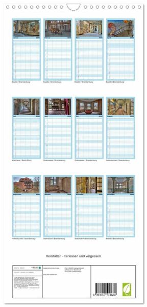 PRAKTISCH - übersichtlicher Familienkalender mit 5 Spalten für bis zu 5 Personen für mehr Struktur im Alltag - so bleiben alle Termine im Blick!ÜBERSICHTLICH - mit farblich getrennten Wochen- und Feiertagen. Die einzelnen Felder bieten genügend Platz für Eintragungen. So macht Organisieren Spaß!FANTASTISCHE BILDER - Dieser Planer ist nicht nur eine nützliche Hilfe im Alltag, sondern schmückt gleichzeitig Ihr Zuhause. Ideal auch als Geschenk.FÜR ALLE STIFTE GEEIGNET - ganz egal, ob Sie lieber mit Kugelschreiber oder Bleistift schreiben.NACHHALTIG - deutliche Abfallreduzierung durch bedarfsgerechte Einzelstückfertigung, umweltfreundliches FSC-zertifiziertes Papier, Produktion in Deutschland, klimabewusste Logistik.Verlassene Heilstätten in Brandenburg und Berlin von Autor(in): Peter Kersten