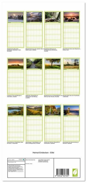 PRAKTISCH - übersichtlicher Familienkalender mit 5 Spalten für bis zu 5 Personen für mehr Struktur im Alltag - so bleiben alle Termine im Blick!ÜBERSICHTLICH - mit farblich getrennten Wochen- und Feiertagen. Die einzelnen Felder bieten genügend Platz für Eintragungen. So macht Organisieren Spaß!FANTASTISCHE BILDER - Dieser Planer ist nicht nur eine nützliche Hilfe im Alltag, sondern schmückt gleichzeitig Ihr Zuhause. Ideal auch als Geschenk.FÜR ALLE STIFTE GEEIGNET - ganz egal, ob Sie lieber mit Kugelschreiber oder Bleistift schreiben.NACHHALTIG - deutliche Abfallreduzierung durch bedarfsgerechte Einzelstückfertigung, umweltfreundliches FSC-zertifiziertes Papier, Produktion in Deutschland, klimabewusste Logistik.Eifel - das ist die Symbiose aus vom Vulkanismus geprägten Landschaften, unberührter Natur und alter Kulturlandschaft. Einfach faszinierend. von Autor(in): alfotokunst