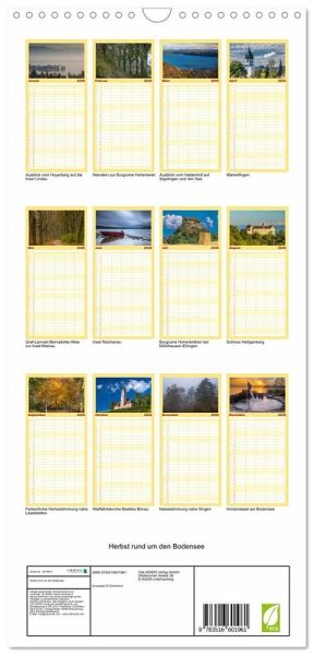 PRAKTISCH - übersichtlicher Familienkalender mit 5 Spalten für bis zu 5 Personen für mehr Struktur im Alltag - so bleiben alle Termine im Blick!ÜBERSICHTLICH - mit farblich getrennten Wochen- und Feiertagen. Die einzelnen Felder bieten genügend Platz für Eintragungen. So macht Organisieren Spaß!FANTASTISCHE BILDER - Dieser Planer ist nicht nur eine nützliche Hilfe im Alltag, sondern schmückt gleichzeitig Ihr Zuhause. Ideal auch als Geschenk.FÜR ALLE STIFTE GEEIGNET - ganz egal, ob Sie lieber mit Kugelschreiber oder Bleistift schreiben.NACHHALTIG - deutliche Abfallreduzierung durch bedarfsgerechte Einzelstückfertigung, umweltfreundliches FSC-zertifiziertes Papier, Produktion in Deutschland, klimabewusste Logistik.Stimmungsvolle Impressionen im goldenen Herbst am Bodensee von Autor(in): Giuseppe Di Domenico
