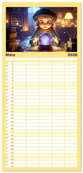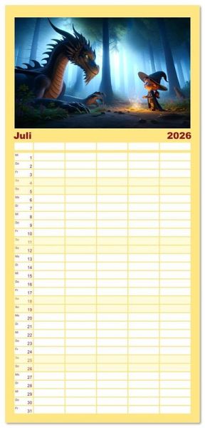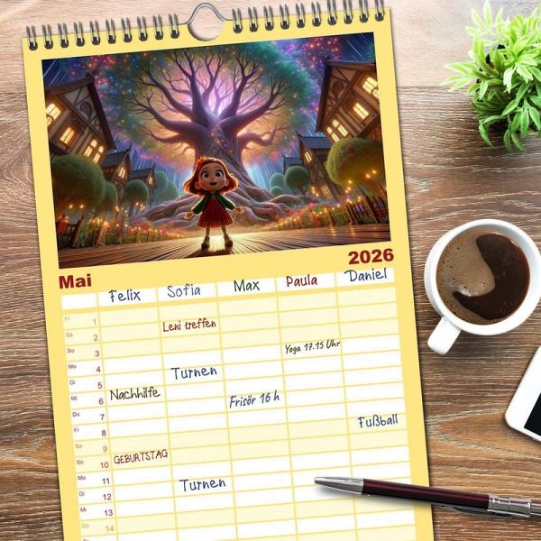 PRAKTISCH - übersichtlicher Familienkalender mit 5 Spalten für bis zu 5 Personen für mehr Struktur im Alltag - so bleiben alle Termine im Blick!ÜBERSICHTLICH - mit farblich getrennten Wochen- und Feiertagen. Die einzelnen Felder bieten genügend Platz für Eintragungen. So macht Organisieren Spaß!FANTASTISCHE BILDER - Dieser Planer ist nicht nur eine nützliche Hilfe im Alltag, sondern schmückt gleichzeitig Ihr Zuhause. Ideal auch als Geschenk.FÜR ALLE STIFTE GEEIGNET - ganz egal, ob Sie lieber mit Kugelschreiber oder Bleistift schreiben.NACHHALTIG - deutliche Abfallreduzierung durch bedarfsgerechte Einzelstückfertigung, umweltfreundliches FSC-zertifiziertes Papier, Produktion in Deutschland, klimabewusste Logistik.Ein magisches Jahr voller Wunder. von Autor(in): Michael Kuelbel