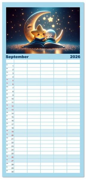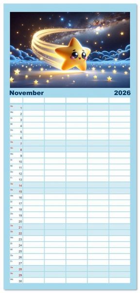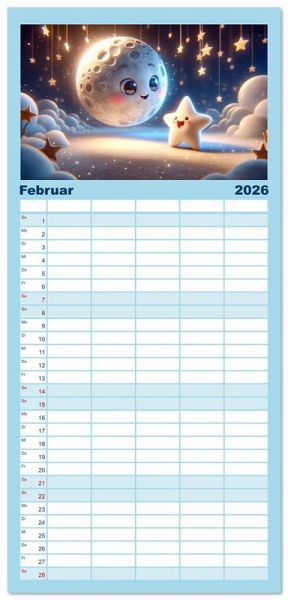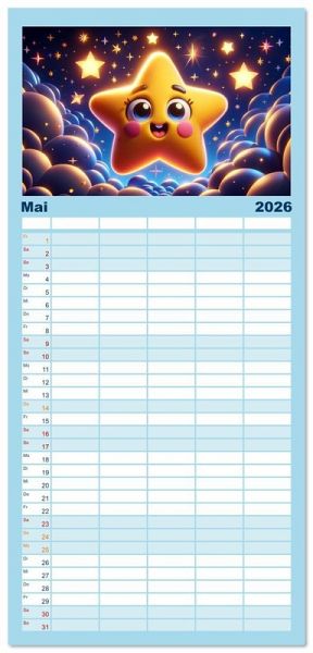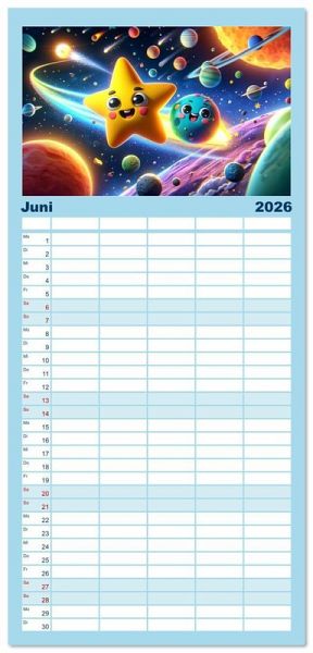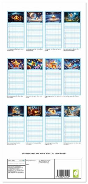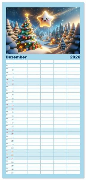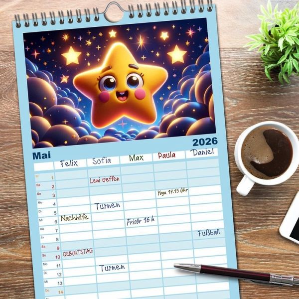 PRAKTISCH - übersichtlicher Familienkalender mit 5 Spalten für bis zu 5 Personen für mehr Struktur im Alltag - so bleiben alle Termine im Blick!ÜBERSICHTLICH - mit farblich getrennten Wochen- und Feiertagen. Die einzelnen Felder bieten genügend Platz für Eintragungen. So macht Organisieren Spaß!FANTASTISCHE BILDER - Dieser Planer ist nicht nur eine nützliche Hilfe im Alltag, sondern schmückt gleichzeitig Ihr Zuhause. Ideal auch als Geschenk.FÜR ALLE STIFTE GEEIGNET - ganz egal, ob Sie lieber mit Kugelschreiber oder Bleistift schreiben.NACHHALTIG - deutliche Abfallreduzierung durch bedarfsgerechte Einzelstückfertigung, umweltfreundliches FSC-zertifiziertes Papier, Produktion in Deutschland, klimabewusste Logistik.Sternenzauber fürs ganze Jahr. von Autor(in): Michael Kuelbel