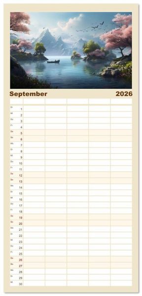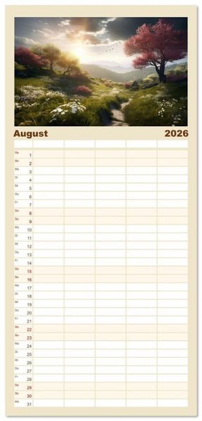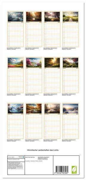 PRAKTISCH - übersichtlicher Familienkalender mit 5 Spalten für bis zu 5 Personen für mehr Struktur im Alltag - so bleiben alle Termine im Blick!ÜBERSICHTLICH - mit farblich getrennten Wochen- und Feiertagen. Die einzelnen Felder bieten genügend Platz für Eintragungen. So macht Organisieren Spaß!FANTASTISCHE BILDER - Dieser Planer ist nicht nur eine nützliche Hilfe im Alltag,sondern schmückt gleichzeitig Ihr Zuhause. Ideal auch als Geschenk.FÜR ALLE STIFTE GEEIGNET - ganz egal, ob Sie lieber mit Kugelschreiber oder Bleistift schreiben.NACHHALTIG - deutliche Abfallreduzierung durch bedarfsgerechte Einzelstückfertigung, umweltfreundliches FSC-zertifiziertes Papier, Produktion in Deutschland, klimabewusste Logistik.Jeden Monat traumhafte Landschaften der Imagination von Autor(in): Marena Camadini