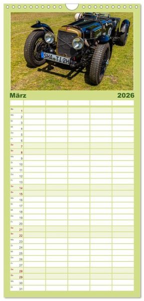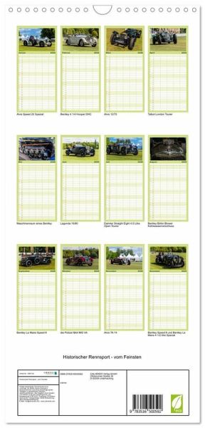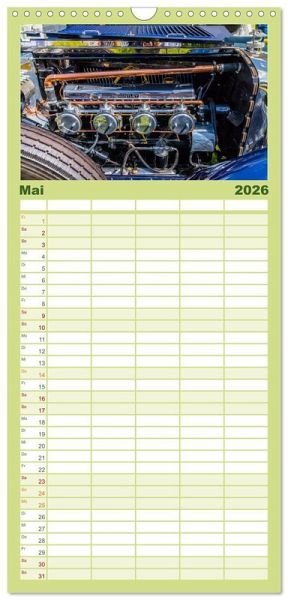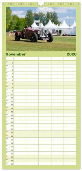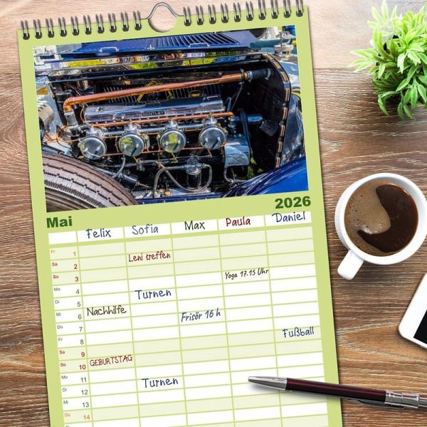 PRAKTISCH - übersichtlicher Familienkalender mit 5 Spalten für bis zu 5 Personen für mehr Struktur im Alltag - so bleiben alle Termine im Blick!ÜBERSICHTLICH - mit farblich getrennten Wochen- und Feiertagen. Die einzelnen Felder bieten genügend Platz für Eintragungen. So macht Organisieren Spaß!FANTASTISCHE BILDER - Dieser Planer ist nicht nur eine nützliche Hilfe im Alltag, sondern schmückt gleichzeitig Ihr Zuhause. Ideal auch als Geschenk.FÜR ALLE STIFTE GEEIGNET - ganz egal, ob Sie lieber mit Kugelschreiber oder Bleistift schreiben.NACHHALTIG - deutliche Abfallreduzierung durch bedarfsgerechte Einzelstückfertigung, umweltfreundliches FSC-zertifiziertes Papier, Produktion in Deutschland, klimabewusste Logistik.Bei den Vintage Race Days in Rastede gibt es historischen Rennsport vom Feinsten. von Autor(in): rsiemer