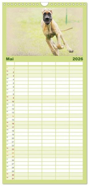 PRAKTISCH - übersichtlicher Familienkalender mit 5 Spalten für bis zu 5 Personen für mehr Struktur im Alltag - so bleiben alle Termine im Blick!ÜBERSICHTLICH - mit farblich getrennten Wochen- und Feiertagen. Die einzelnen Felder bieten genügend Platz für Eintragungen. So macht Organisieren Spaß!FANTASTISCHE BILDER - Dieser Planer ist nicht nur eine nützliche Hilfe im Alltag, sondern schmückt gleichzeitig Ihr Zuhause. Ideal auch als Geschenk.FÜR ALLE STIFTE GEEIGNET - ganz egal, ob Sie lieber mit Kugelschreiber oder Bleistift schreiben.NACHHALTIG - deutliche Abfallreduzierung durch bedarfsgerechte Einzelstückfertigung, umweltfreundliches FSC-zertifiziertes Papier, Produktion in Deutschland, klimabewusste Logistik.Hundewelpen im kunstvollen Aquarell-Stil. Wer außergewöhnliche Bilder liebt, wird in diesem Kalender fündig. Durch den einzigartigen Bildstil im Aquarell-Design gleicht jedes Motiv einem kleinen Kunstwerk von Autor(in): Andrea Redecker