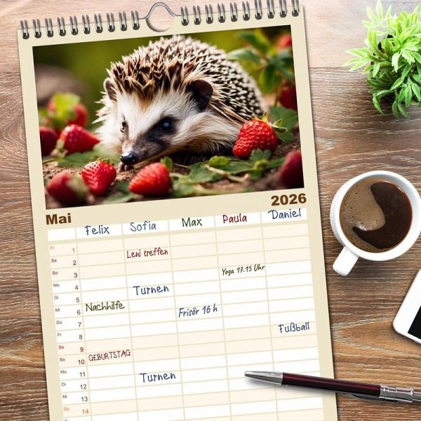 PRAKTISCH - übersichtlicher Familienkalender mit 5 Spalten für bis zu 5 Personen für mehr Struktur im Alltag - so bleiben alle Termine im Blick!ÜBERSICHTLICH - mit farblich getrennten Wochen- und Feiertagen. Die einzelnen Felder bieten genügend Platz für Eintragungen. So macht Organisieren Spaß!FANTASTISCHE BILDER - Dieser Planer ist nicht nur eine nützliche Hilfe im Alltag, sondern schmückt gleichzeitig Ihr Zuhause. Ideal auch als Geschenk.FÜR ALLE STIFTE GEEIGNET - ganz egal, ob Sie lieber mit Kugelschreiber oder Bleistift schreiben.NACHHALTIG - deutliche Abfallreduzierung durch bedarfsgerechte Einzelstückfertigung, umweltfreundliches FSC-zertifiziertes Papier, Produktion in Deutschland, klimabewusste Logistik.Mit Stachelpelz auf der Jagd nach Schnecken und Larven im heimischen Garten von Autor(in): Claudia Kleemann
