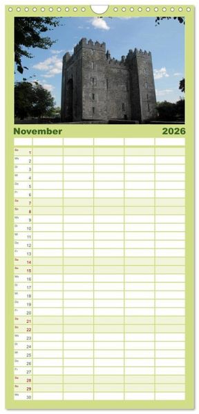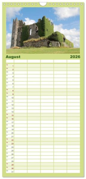PRAKTISCH - übersichtlicher Familienkalender mit 5 Spalten für bis zu 5 Personen für mehr Struktur im Alltag - so bleiben alle Termine im Blick!ÜBERSICHTLICH - mit farblich getrennten Wochen- und Feiertagen. Die einzelnen Felder bieten genügend Platz für Eintragungen. So macht Organisieren Spaß!FANTASTISCHE BILDER - Dieser Planer ist nicht nur eine nützliche Hilfe im Alltag, sondern schmückt gleichzeitig Ihr Zuhause. Ideal auch als Geschenk.FÜR ALLE STIFTE GEEIGNET - ganz egal, ob Sie lieber mit Kugelschreiber oder Bleistift schreiben.NACHHALTIG - deutliche Abfallreduzierung durch bedarfsgerechte Einzelstückfertigung, umweltfreundliches FSC-zertifiziertes Papier, Produktion in Deutschland, klimabewusste Logistik.EinReiseerlebnis in Irland. Wunderschöne alte Burgen, Schlösser und faszinerende Landschaften. von Autor(in): Claudia Knof-Hartmann