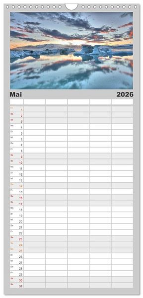 PRAKTISCH - übersichtlicher Familienkalender mit 5 Spalten für bis zu 5 Personen für mehr Struktur im Alltag - so bleiben alle Termine im Blick!ÜBERSICHTLICH - mit farblich getrennten Wochen- und Feiertagen. Die einzelnen Felder bieten genügend Platz für Eintragungen. So macht Organisieren Spaß!FANTASTISCHE BILDER - Dieser Planer ist nicht nur eine nützliche Hilfe im Alltag, sondern schmückt gleichzeitig Ihr Zuhause. Ideal auch als Geschenk.FÜR ALLE STIFTE GEEIGNET - ganz egal, ob Sie lieber mit Kugelschreiber oder Bleistift schreiben.NACHHALTIG - deutliche Abfallreduzierung durch bedarfsgerechte Einzelstückfertigung, umweltfreundliches FSC-zertifiziertes Papier, Produktion in Deutschland, klimabewusste Logistik.Faszinierende Bilder von ursprünglichen Landschaften von Autor(in): Judith Kuhn