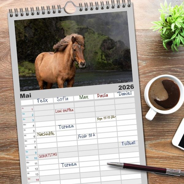 PRAKTISCH - übersichtlicher Familienkalender mit 5 Spalten für bis zu 5 Personen für mehr Struktur im Alltag - so bleiben alle Termine im Blick!ÜBERSICHTLICH - mit farblich getrennten Wochen- und Feiertagen. Die einzelnen Felder bieten genügend Platz für Eintragungen. So macht Organisieren Spaß!FANTASTISCHE BILDER - Dieser Planer ist nicht nur eine nützliche Hilfe im Alltag, sondern schmückt gleichzeitig Ihr Zuhause. Ideal auch als Geschenk.FÜR ALLE STIFTE GEEIGNET - ganz egal, ob Sie lieber mit Kugelschreiber oder Bleistift schreiben.NACHHALTIG - deutliche Abfallreduzierung durch bedarfsgerechte Einzelstückfertigung, umweltfreundliches FSC-zertifiziertes Papier, Produktion in Deutschland, klimabewusste Logistik.Islandpferde in ihrer natürlichen Umgebung von Autor(in): Alexandra Voth
