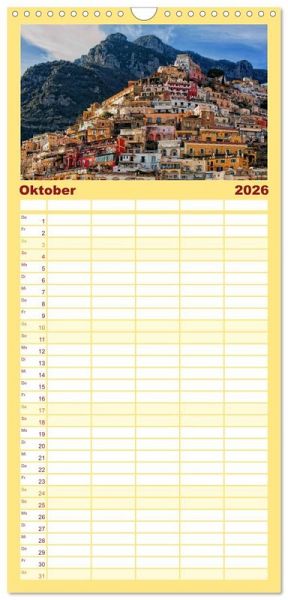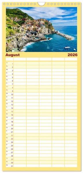 icher Familienkalender mit 5 Spalten für bis zu 5 Personen für mehr Struktur im Alltag - so bleiben alle Termine im Blick!ÜBERSICHTLICH - mit farblich getrennten Wochen- und Feiertagen. Die einzelnen Felder bieten genügend Platz für Eintragungen. So macht Organisieren Spaß!FANTASTISCHE BILDER - Dieser Planer ist nicht nur eine nützliche Hilfe im Alltag, sondern schmückt gleichzeitig Ihr Zuhause. Ideal auch als Geschenk.FÜR ALLE STIFTE GEEIGNET - ganz egal, ob Sie lieber mit Kugelschreiber oder Bleistift schreiben.NACHHALTIG - deutliche Abfallreduzierung durch bedarfsgerechte Einzelstückfertigung, umweltfreundliches FSC-zertifiziertes Papier, Produktion in Deutschland, klimabewusste Logistik.Italiens unglaubliche Schönheit. von Autor(in): Happy Monkey