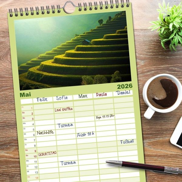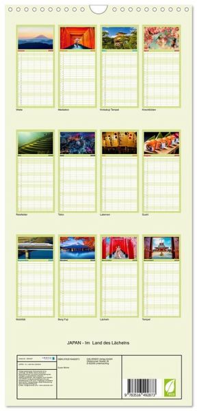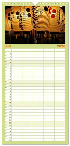 PRAKTISCH - übersichtlicher Familienkalender mit 5 Spalten für bis zu 5 Personen für mehr Struktur im Alltag - so bleiben alle Termine im Blick!ÜBERSICHTLICH - mit farblich getrennten Wochen- und Feiertagen. Die einzelnen Felder bieten genügend Platz für Eintragungen. So macht Organisieren Spaß!FANTASTISCHE BILDER - Dieser Planer ist nicht nur eine nützliche Hilfe im Alltag, sondern schmückt gleichzeitig Ihr Zuhause. Ideal auch als Geschenk.FÜR ALLE STIFTE GEEIGNET - ganz egal, ob Sie lieber mit Kugelschreiber oder Bleistift schreiben.NACHHALTIG - deutliche Abfallreduzierung durch bedarfsgerechte Einzelstückfertigung, umweltfreundliches FSC-zertifiziertes Papier, Produktion in Deutschland, klimabewusste Logistik.Entdecke Japans Lächeln! von Autor(in): Susan Michel