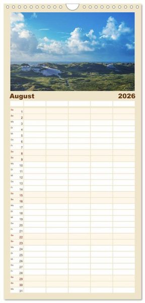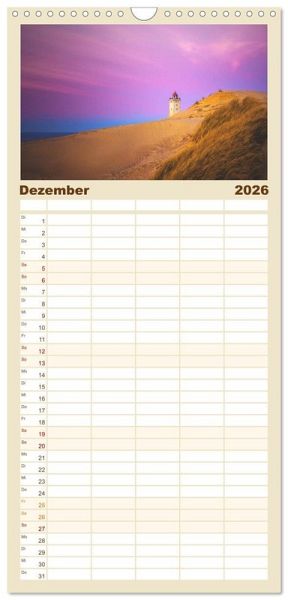 PRAKTISCH - übersichtlicher Familienkalender mit 5 Spalten für bis zu 5 Personen für mehr Struktur im Alltag - so bleiben alle Termine im Blick!ÜBERSICHTLICH - mit farblich getrennten Wochen- und Feiertagen. Die einzelnen Felder bieten genügend Platz für Eintragungen. So macht Organisieren Spaß!FANTASTISCHE BILDER - Dieser Planer ist nicht nur eine nützliche Hilfe im Alltag, sondern schmückt gleichzeitig Ihr Zuhause. Ideal auch als Geschenk.FÜR ALLE STIFTE GEEIGNET - ganz egal, ob Sie lieber mit Kugelschreiber oder Bleistift schreiben.NACHHALTIG - deutliche Abfallreduzierung durch bedarfsgerechte Einzelstückfertigung, umweltfreundliches FSC-zertifiziertes Papier, Produktion in Deutschland, klimabewusste Logistik.Die Nordseeküste in Dänemark von Bjerregard bis Rubjerg Knude von Autor(in): Florian Kunde