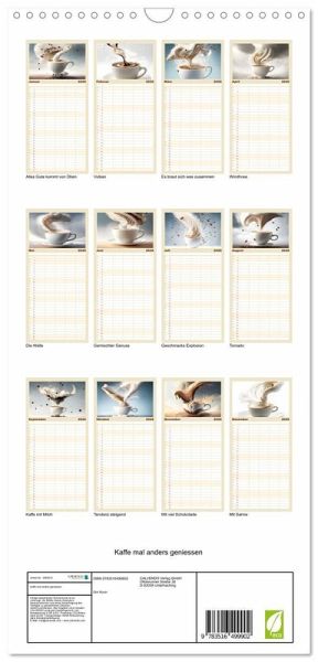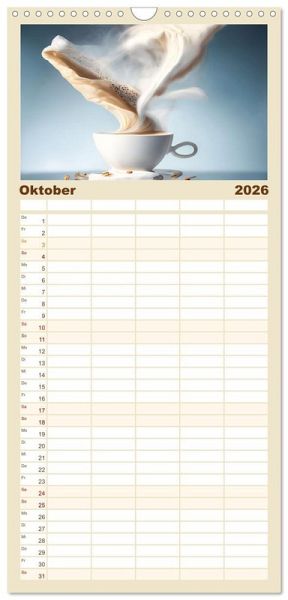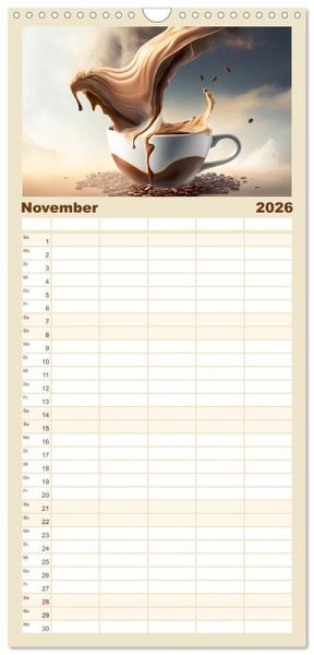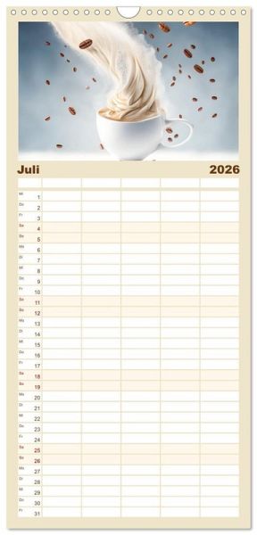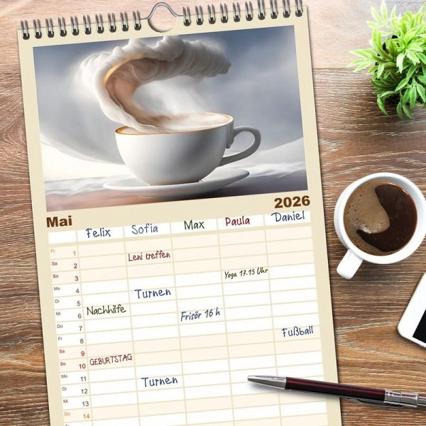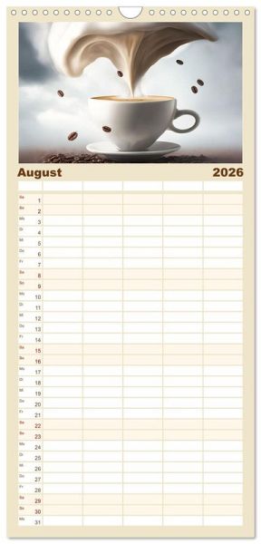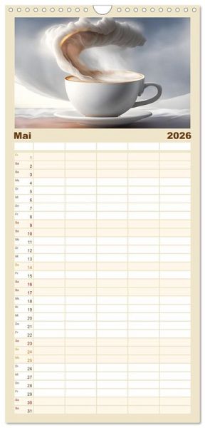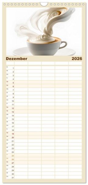 PRAKTISCH - übersichtlicher Familienkalender mit 5 Spalten für bis zu 5 Personen für mehr Struktur im Alltag - so bleiben alle Termine im Blick!ÜBERSICHTLICH - mit farblich getrennten Wochen- und Feiertagen. Die einzelnen Felder bieten genügend Platz für Eintragungen. So macht Organisieren Spaß!FANTASTISCHE BILDER - Dieser Planer ist nicht nur eine nützliche Hilfe im Alltag, sondern schmückt gleichzeitig Ihr Zuhause. Ideal auch als Geschenk.FÜR ALLE STIFTE GEEIGNET - ganz egal, ob Sie lieber mit Kugelschreiber oder Bleistift schreiben.NACHHALTIG - deutliche Abfallreduzierung durch bedarfsgerechte Einzelstückfertigung, umweltfreundliches FSC-zertifiziertes Papier, Produktion in Deutschland, klimabewusste Logistik.Für Kaffeeliebhaber mit dem besonderen Blick von Autor(in): Dirk Rosin