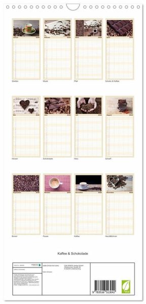 rganisieren Spaß!FANTASTISCHE BILDER - Dieser Planer ist nicht nur eine nützliche Hilfe im Alltag, sondern schmückt gleichzeitig Ihr Zuhause. Ideal auch als Geschenk.FÜR ALLE STIFTE GEEIGNET - ganz egal, ob Sie lieber mit Kugelschreiber oder Bleistift schreiben.NACHHALTIG - deutliche Abfallreduzierung durch bedarfsgerechte Einzelstückfertigung, umweltfreundliches FSC-zertifiziertes Papier, Produktion in Deutschland, klimabewusste Logistik.Ein schöner Kalender - Schoko und Kaffee von Autor(in): Nailia
