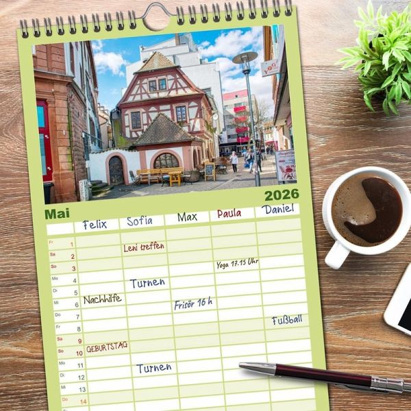 Familienkalender mit 5 Spalten für bis zu 5 Personen für mehr Struktur im Alltag - so bleiben alle Termine im Blick!ÜBERSICHTLICH - mit farblich getrennten Wochen- und Feiertagen. Die einzelnen Felder bieten genügend Platz für Eintragungen. So macht Organisieren Spaß!FANTASTISCHE BILDER - Dieser Planer ist nicht nur eine nützliche Hilfe im Alltag, sondern schmückt gleichzeitig Ihr Zuhause. Ideal auch als Geschenk.FÜR ALLE STIFTE GEEIGNET - ganz egal, ob Sie lieber mit Kugelschreiber oder Bleistift schreiben.NACHHALTIG - deutliche Abfallreduzierung durch bedarfsgerechte Einzelstückfertigung, umweltfreundliches FSC-zertifiziertes Papier, Produktion in Deutschland, klimabewusste Logistik.Spaziergang durch ein schönes Stück Pfalz von Autor(in): Thomas Bartruff