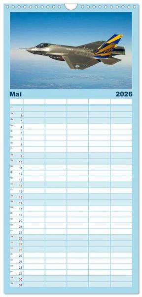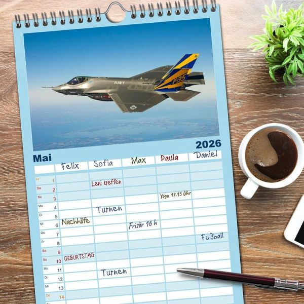 PRAKTISCH - übersichtlicher Familienkalender mit 5 Spalten für bis zu 5 Personen für mehr Struktur im Alltag - so bleiben alle Termine im Blick!ÜBERSICHTLICH - mit farblich getrennten Wochen- und Feiertagen. Die einzelnen Felder bieten genügend Platz für Eintragungen. So macht Organisieren Spaß!FANTASTISCHE BILDER - Dieser Planer ist nicht nur eine nützliche Hilfe im Alltag, sondern schmückt gleichzeitig Ihr Zuhause. Ideal auch als Geschenk.FÜR ALLE STIFTE GEEIGNET - ganz egal, ob Sie lieber mit Kugelschreiber oder Bleistift schreiben.NACHHALTIG - deutliche Abfallreduzierung durch bedarfsgerechte Einzelstückfertigung, umweltfreundliches FSC-zertifiziertes Papier, Produktion in Deutschland, klimabewusste Logistik.Entdecken Sie die atemberaubende Welt der Düsenjäger. von Autor(in): Benjamin Lederer