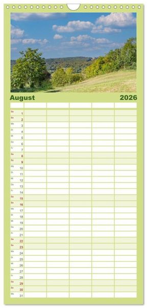 PRAKTISCH - übersichtlicher Familienkalender mit 5 Spalten für bis zu 5 Personen für mehr Struktur im Alltag - so bleiben alle Termine im Blick!ÜBERSICHTLICH - mit farblich getrennten Wochen- und Feiertagen. Die einzelnen Felder bieten genügend Platz für Eintragungen. So macht Organisieren Spaß!FANTASTISCHE BILDER - Dieser Planer ist nicht nur eine nützliche Hilfe im Alltag, sondern schmückt gleichzeitig Ihr Zuhause. Ideal auch als Geschenk.FÜR ALLE STIFTE GEEIGNET - ganz egal, ob Sie lieber mit Kugelschreiber oder Bleistift schreiben.NACHHALTIG - deutliche Abfallreduzierung durch bedarfsgerechte Einzelstückfertigung, umweltfreundliches FSC-zertifiziertes Papier, Produktion in Deutschland, klimabewusste Logistik.Wunderschöne Naturaufnahmen der nordhessischen Stadt Kassel. von Autor(in): Angela Rohde