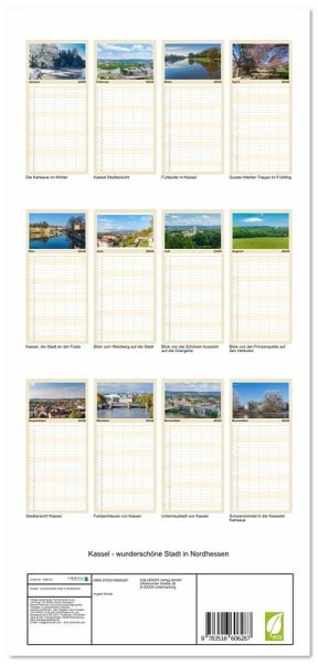 PRAKTISCH - übersichtlicher Familienkalender mit 5 Spalten für bis zu 5 Personen für mehr Struktur im Alltag - so bleiben alle Termine im Blick!ÜBERSICHTLICH - mit farblich getrennten Wochen- und Feiertagen. Die einzelnen Felder bieten genügend Platz für Eintragungen. So macht Organisieren Spaß!FANTASTISCHE BILDER - Dieser Planer ist nicht nur eine nützliche Hilfe im Alltag, sondern schmückt gleichzeitig Ihr Zuhause. Ideal auch als Geschenk.FÜR ALLE STIFTE GEEIGNET - ganz egal, ob Sie lieber mit Kugelschreiber oder Bleistift schreiben.NACHHALTIG -deutliche Abfallreduzierung durch bedarfsgerechte Einzelstückfertigung, umweltfreundliches FSC-zertifiziertes Papier, Produktion in Deutschland, klimabewusste Logistik.Impressionen der Stadt Kassel, die in der Mitte Deutschlands, dem schönen Nordhessen liegt. von Autor(in): Angela Rohde