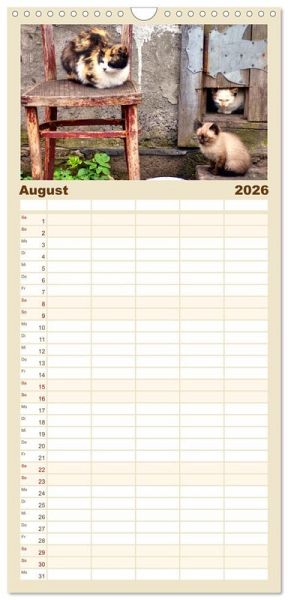 PRAKTISCH - übersichtlicher Familienkalender mit 5 Spalten für bis zu 5 Personen für mehr Struktur im Alltag - so bleiben alle Termine im Blick!ÜBERSICHTLICH - mit farblich getrennten Wochen- und Feiertagen. Die einzelnen Felder bieten genügend Platz für Eintragungen. So macht Organisieren Spaß!FANTASTISCHE BILDER - Dieser Planer ist nicht nur eine nützliche Hilfe im Alltag, sondern schmückt gleichzeitig Ihr Zuhause. Ideal auch als Geschenk.FÜR ALLE STIFTE GEEIGNET - ganz egal, ob Sie lieber mit Kugelschreiber oder Bleistift schreiben.NACHHALTIG - deutliche Abfallreduzierung durch bedarfsgerechte Einzelstückfertigung, umweltfreundliches FSC-zertifiziertes Papier, Produktion in Deutschland, klimabewusste Logistik.Katzen verschiedener Rassen in Selenogradsk/Cranz von Autor(in): Henning von Loewis of Menar
