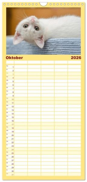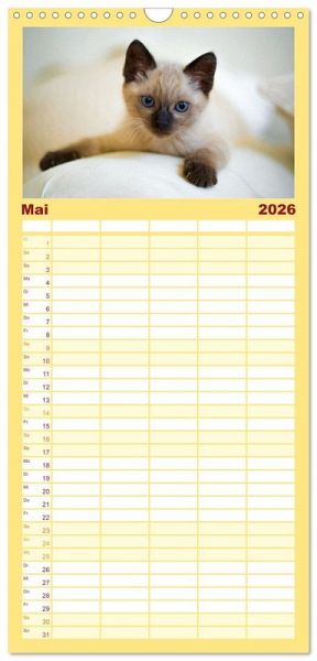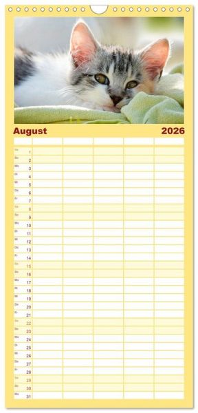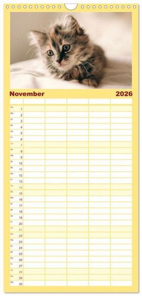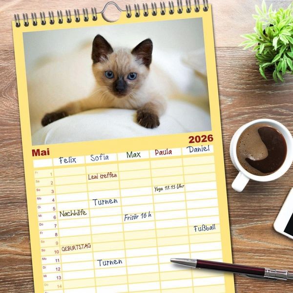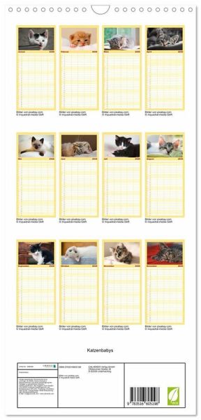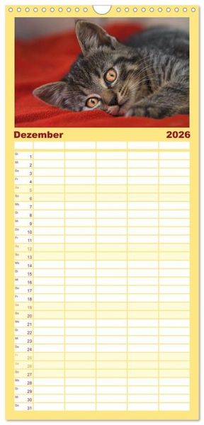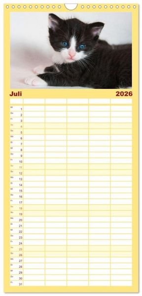PRAKTISCH - übersichtlicher Familienkalender mit 5 Spalten für bis zu 5 Personen für mehr Struktur im Alltag - so bleiben alle Termine im Blick!ÜBERSICHTLICH - mit farblich getrennten Wochen- und Feiertagen. Die einzelnen Felder bieten genügend Platz für Eintragungen. So macht Organisieren Spaß!FANTASTISCHE BILDER - Dieser Planer ist nicht nur eine nützliche Hilfe im Alltag, sondern schmückt gleichzeitig Ihr Zuhause. Ideal auch als Geschenk.FÜR ALLE STIFTE GEEIGNET - ganz egal, ob Sie lieber mit Kugelschreiber oder Bleistift schreiben.NACHHALTIG - deutliche Abfallreduzierung durch bedarfsgerechte Einzelstückfertigung, umweltfreundliches FSC-zertifiziertes Papier, Produktion in Deutschland, klimabewusste Logistik.Katzenkalender mit Baby Katzen von Autor(in): mquadrat media