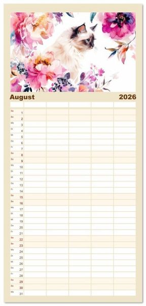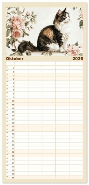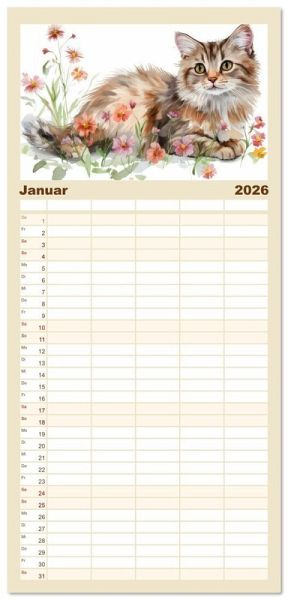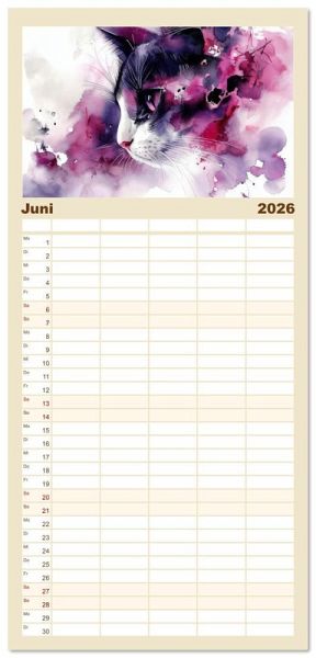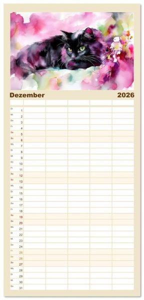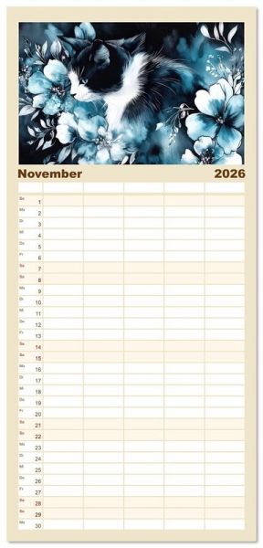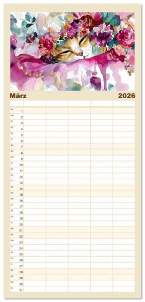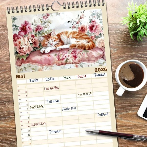 PRAKTISCH - übersichtlicher Familienkalender mit 5 Spalten für bis zu 5 Personen für mehr Struktur im Alltag - so bleiben alle Termine im Blick!ÜBERSICHTLICH - mit farblich getrennten Wochen- und Feiertagen. Die einzelnen Felder bieten genügend Platz für Eintragungen. So macht Organisieren Spaß!FANTASTISCHE BILDER - Dieser Planer ist nicht nur eine nützliche Hilfe im Alltag, sondern schmückt gleichzeitig Ihr Zuhause. Ideal auch als Geschenk.FÜR ALLE STIFTE GEEIGNET - ganz egal, ob Sie lieber mit Kugelschreiber oder Bleistift schreiben.NACHHALTIG - deutliche Abfallreduzierung durch bedarfsgerechte Einzelstückfertigung, umweltfreundliches FSC-zertifiziertes Papier, Produktion in Deutschland, klimabewusste Logistik.Samtene Pfoten in Aquarell von Autor(in): Tina Seidel