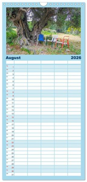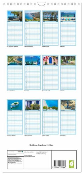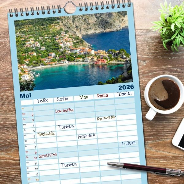 bersichtlicher Familienkalender mit 5 Spalten für bis zu 5 Personen für mehr Struktur im Alltag - so bleiben alle Termine im Blick!ÜBERSICHTLICH - mit farblich getrennten Wochen- und Feiertagen. Die einzelnen Felder bieten genügend Platz für Eintragungen. So macht Organisieren Spaß!FANTASTISCHE BILDER - Dieser Planer ist nicht nur eine nützliche Hilfe im Alltag, sondern schmückt gleichzeitig Ihr Zuhause. Ideal auch als Geschenk.FÜR ALLE STIFTE GEEIGNET - ganz egal, ob Sie lieber mit Kugelschreiber oder Bleistift schreiben.NACHHALTIG - deutliche Abfallreduzierung durch bedarfsgerechte Einzelstückfertigung, umweltfreundliches FSC-zertifiziertes Papier, Produktion in Deutschland, klimabewusste Logistik.Kefalonia ist noch ein wahrer Geheimtipp für Griechenlandfans. von Autor(in): Elisabeth Horak-Auer