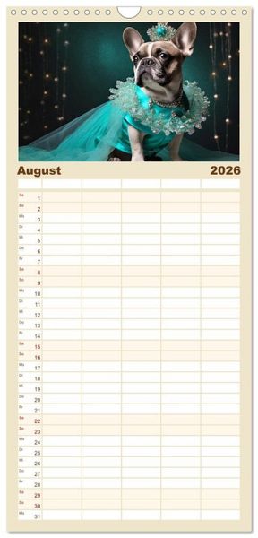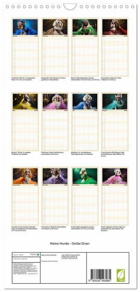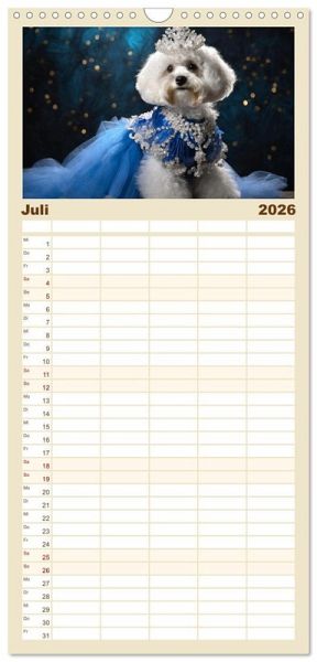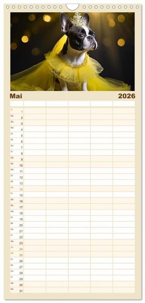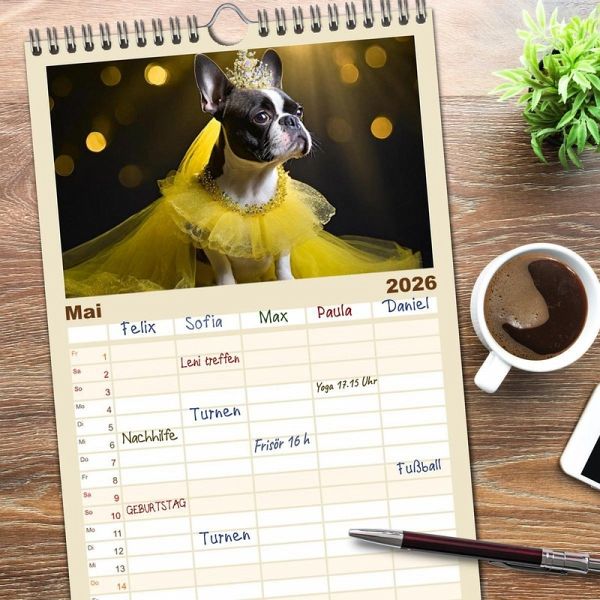 PRAKTISCH - übersichtlicher Familienkalender mit 5 Spalten für bis zu 5 Personen für mehr Struktur im Alltag - so bleiben alle Termine im Blick!ÜBERSICHTLICH - mit farblich getrennten Wochen- und Feiertagen. Die einzelnen Felder bieten genügend Platz für Eintragungen. So macht Organisieren Spaß!FANTASTISCHE BILDER - Dieser Planer ist nicht nur eine nützliche Hilfe im Alltag, sondern schmückt gleichzeitig Ihr Zuhause. Ideal auch als Geschenk.FÜR ALLE STIFTE GEEIGNET - ganz egal, ob Sie lieber mit Kugelschreiber oder Bleistift schreiben.NACHHALTIG - deutliche Abfallreduzierung durch bedarfsgerechte Einzelstückfertigung, umweltfreundliches FSC-zertifiziertes Papier, Produktion in Deutschland, klimabewusste Logistik.Kleine Hunde werden zu glamourösen Stars von Autor(in): Fotodesign Verena Scholze