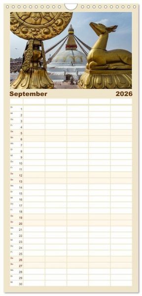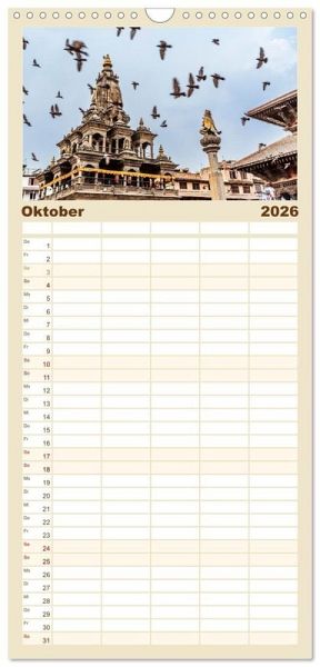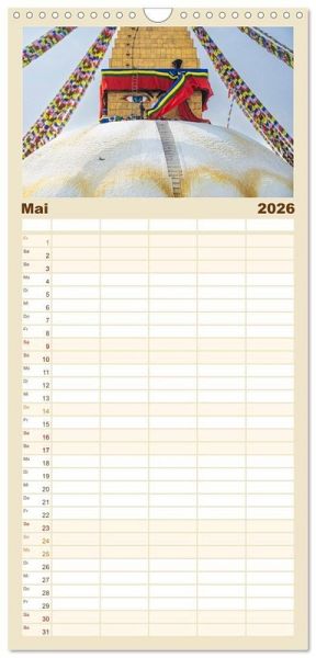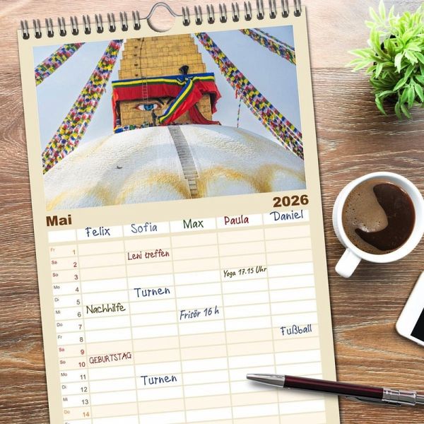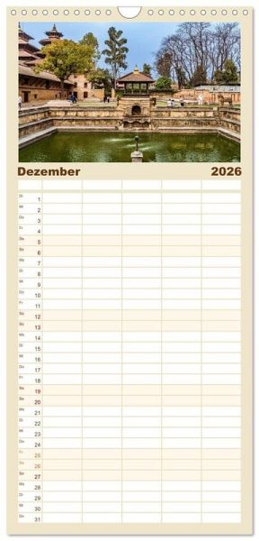 PRAKTISCH - übersichtlicher Familienkalender mit 5 Spalten für bis zu 5 Personen für mehr Struktur im Alltag - so bleiben alle Termine im Blick!ÜBERSICHTLICH - mit farblich getrennten Wochen- und Feiertagen. Die einzelnen Felder bieten genügend Platz für Eintragungen. So macht Organisieren Spaß!FANTASTISCHE BILDER - Dieser Planer ist nicht nur eine nützliche Hilfe im Alltag, sondern schmückt gleichzeitig Ihr Zuhause. Ideal auch als Geschenk.FÜR ALLE STIFTE GEEIGNET - ganz egal, ob Sie lieber mit Kugelschreiber oder Bleistift schreiben.NACHHALTIG - deutliche Abfallreduzierung durch bedarfsgerechte Einzelstückfertigung, umweltfreundliches FSC-zertifiziertes Papier, Produktion in Deutschland, klimabewusste Logistik.Königstätte im Kathmandutal von Nepal von Autor(in): Rainer Steußloff