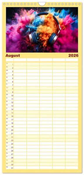 PRAKTISCH - übersichtlicher Familienkalender mit 5 Spalten für bis zu 5 Personen für mehr Struktur im Alltag - so bleiben alle Termine im Blick!ÜBERSICHTLICH - mit farblich getrennten Wochen- und Feiertagen. Die einzelnen Felder bieten genügend Platz für Eintragungen. So macht Organisieren Spaß!FANTASTISCHE BILDER - Dieser Planer ist nicht nur eine nützliche Hilfe im Alltag, sondern schmückt gleichzeitig Ihr Zuhause. Ideal auch als Geschenk.FÜR ALLE STIFTE GEEIGNET - ganz egal, ob Sie lieber mit Kugelschreiber oder Bleistift schreiben.NACHHALTIG - deutliche Abfallreduzierung durch bedarfsgerechte Einzelstückfertigung, umweltfreundliches FSC-zertifiziertes Papier, Produktion in Deutschland, klimabewusste Logistik.Ein Konzert der Farben ist eine einzigartige künstlerische Reise, die die Sinne belebt und die Zuhörer in eine Welt der kreativen Verbindung von Klang und Farbe entführt. von Autor(in): Steffen Gierok ; Magik Artist Design