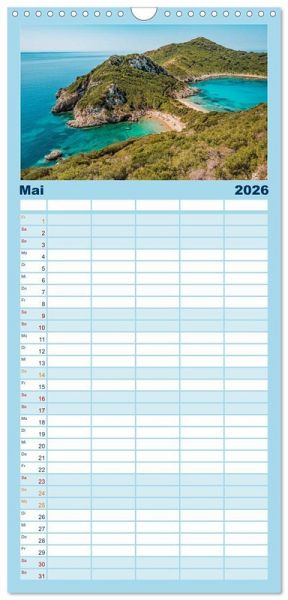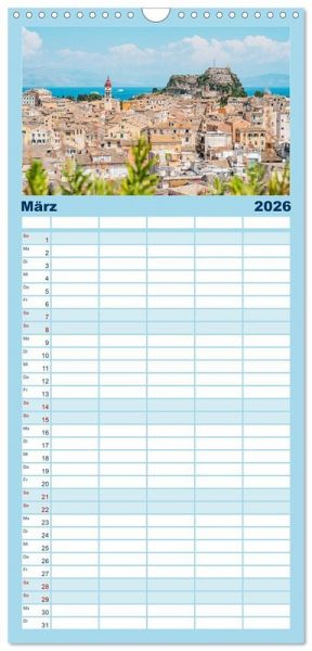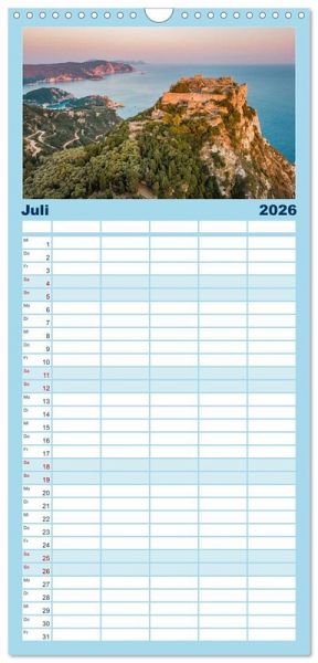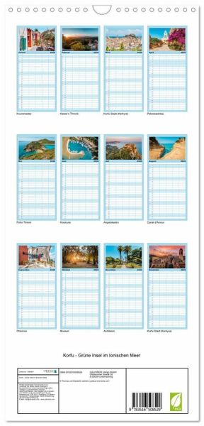 PRAKTISCH - übersichtlicher Familienkalender mit 5 Spalten für bis zu 5 Personen für mehr Struktur im Alltag - so bleiben alle Termine im Blick!ÜBERSICHTLICH - mit farblich getrennten Wochen- und Feiertagen. Die einzelnen Felder bieten genügend Platz für Eintragungen. So macht Organisieren Spaß!FANTASTISCHE BILDER - Dieser Planer ist nicht nur eine nützliche Hilfe im Alltag, sondern schmückt gleichzeitig Ihr Zuhause. Ideal auch als Geschenk.FÜR ALLE STIFTE GEEIGNET - ganz egal, ob Sie lieber mit Kugelschreiber oder Bleistift schreiben.NACHHALTIG - deutliche Abfallreduzierung durch bedarfsgerechte Einzelstückfertigung, umweltfreundliches FSC-zertifiziertes Papier, Produktion in Deutschland, klimabewusste Logistik.Wunderschöne Impressionen von der bezaubernden Insel Korfu, dem beliebtesten Eiland der Ionischen Inseln von Autor(in): Thomas Jastram