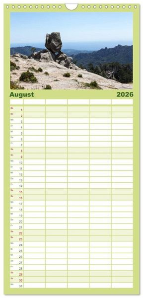 PRAKTISCH - übersichtlicher Familienkalender mit 5 Spalten für bis zu 5 Personen für mehr Struktur im Alltag - so bleiben alle Termine im Blick!ÜBERSICHTLICH - mit farblich getrennten Wochen- und Feiertagen. Die einzelnen Felder bieten genügend Platz für Eintragungen. So macht Organisieren Spaß!FANTASTISCHE BILDER - Dieser Planer ist nicht nur eine nützliche Hilfe im Alltag, sondern schmückt gleichzeitig Ihr Zuhause. Ideal auch als Geschenk.FÜR ALLE STIFTE GEEIGNET - ganz egal, ob Sie lieber mit Kugelschreiber oder Bleistift schreiben.NACHHALTIG - deutliche Abfallreduzierung durch bedarfsgerechte Einzelstückfertigung, umweltfreundliches FSC-zertifiziertes Papier, Produktion in Deutschland, klimabewusste Logistik.Korsika, rau und schön zugleich von Autor(in): Andreas Jordan