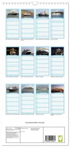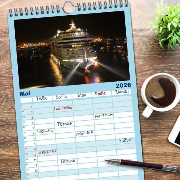 PRAKTISCH - übersichtlicher Familienkalender mit 5 Spalten für bis zu 5 Personen für mehr Struktur im Alltag - so bleiben alle Termine im Blick!ÜBERSICHTLICH - mit farblich getrennten Wochen- und Feiertagen. Die einzelnen Felder bieten genügend Platz für Eintragungen. So macht Organisieren Spaß!FANTASTISCHE BILDER - Dieser Planer ist nicht nur eine nützliche Hilfe im Alltag, sondern schmückt gleichzeitig Ihr Zuhause. Ideal auch als Geschenk.FÜR ALLE STIFTE GEEIGNET - ganz egal, ob Sie lieber mit Kugelschreiber oder Bleistift schreiben.NACHHALTIG - deutliche Abfallreduzierung durch bedarfsgerechte Einzelstückfertigung, umweltfreundliches FSC-zertifiziertes Papier, Produktion in Deutschland, klimabewusste Logistik.Die schönsten Kreuzfahrtschiffe in europäischen Gewässern von Autor(in): Patrick le Plat