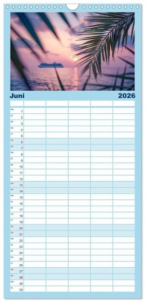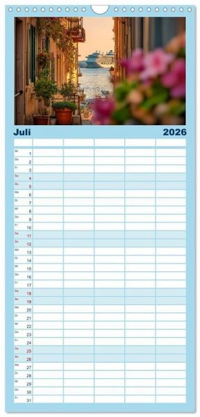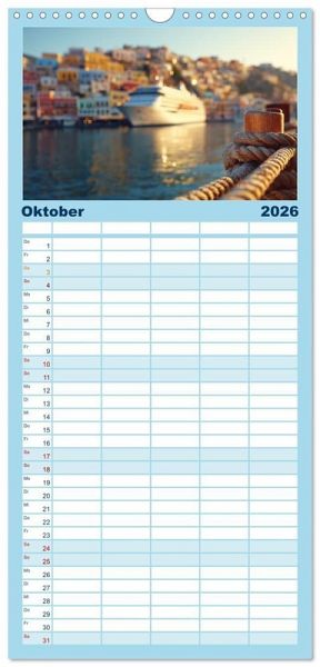 PRAKTISCH - übersichtlicher Familienkalender mit 5 Spalten für bis zu 5 Personen für mehr Struktur im Alltag - so bleiben alle Termine im Blick!ÜBERSICHTLICH - mit farblich getrennten Wochen- und Feiertagen. Die einzelnen Felder bieten genügend Platz für Eintragungen. So macht Organisieren Spaß!FANTASTISCHE BILDER - Dieser Planer ist nicht nur eine nützliche Hilfe im Alltag, sondern schmückt gleichzeitig Ihr Zuhause. Ideal auch als Geschenk.FÜR ALLE STIFTE GEEIGNET - ganz egal, ob Sie lieber mit Kugelschreiber oder Bleistift schreiben.NACHHALTIG - deutliche Abfallreduzierung durch bedarfsgerechte Einzelstückfertigung, umweltfreundliches FSC-zertifiziertes Papier, Produktion in Deutschland, klimabewusste Logistik.Gigantische Kreuzfahrtschiffe auf hoher See, im Hafen und vor Trauminseln. Perfektes Geschenk für Schiff-Fans - ein maritimer Urlaub Kalender voller Meer, Kreuzfahrt und Abenteuer. von Autor(in): Michael Bihlmayer