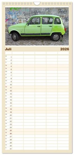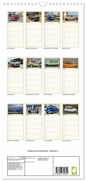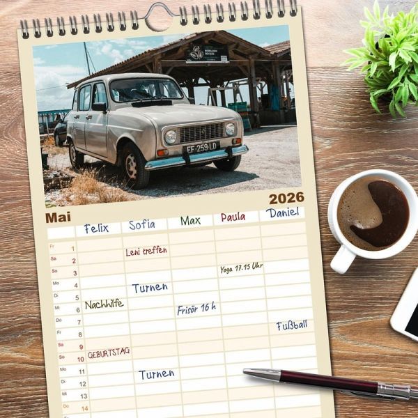 zu 5 Personen für mehr Struktur im Alltag - so bleiben alle Termine im Blick!ÜBERSICHTLICH - mit farblich getrennten Wochen- und Feiertagen. Die einzelnen Felder bieten genügend Platz für Eintragungen. So macht Organisieren Spaß!FANTASTISCHE BILDER - Dieser Planer ist nicht nur eine nützliche Hilfe im Alltag, sondern schmückt gleichzeitig Ihr Zuhause. Ideal auch als Geschenk.FÜR ALLE STIFTE GEEIGNET - ganz egal, ob Sie lieber mit Kugelschreiber oder Bleistift schreiben.NACHHALTIG - deutliche Abfallreduzierung durch bedarfsgerechte Einzelstückfertigung, umweltfreundliches FSC-zertifiziertes Papier, Produktion in Deutschland, klimabewusste Logistik.Der Renault 4, vom Alltagsauto zum beliebten Klassiker von Autor(in): Karin Strunge