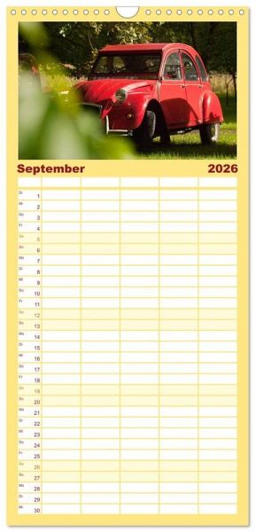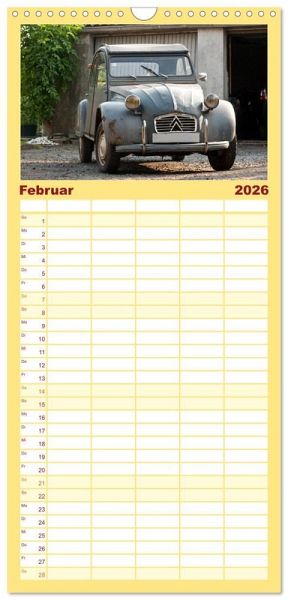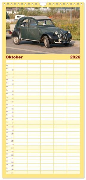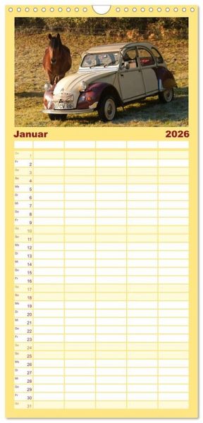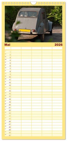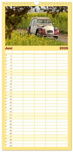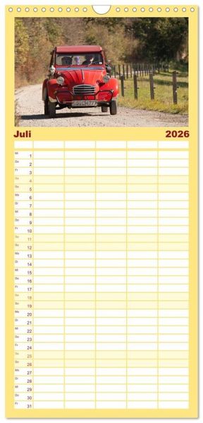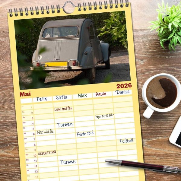 PRAKTISCH - übersichtlicher Familienkalender mit 5 Spalten für bis zu 5 Personen für mehr Struktur im Alltag - so bleiben alle Termine im Blick!ÜBERSICHTLICH - mit farblich getrennten Wochen- und Feiertagen. Die einzelnen Felder bieten genügend Platz für Eintragungen. So macht Organisieren Spaß!FANTASTISCHE BILDER - Dieser Planer ist nicht nur eine nützliche Hilfe im Alltag, sondern schmückt gleichzeitig Ihr Zuhause. Ideal auch als Geschenk.FÜR ALLE STIFTE GEEIGNET - ganz egal, ob Sie lieber mit Kugelschreiber oder Bleistift schreiben.NACHHALTIG - deutliche Abfallreduzierung durch bedarfsgerechte Einzelstückfertigung, umweltfreundliches FSC-zertifiziertes Papier, Produktion in Deutschland, klimabewusste Logistik.Der Citroën 2CV wurde bis 1990 gebaut und verkörpert auch heute noch ein ganz besonderes Lebensgefühl von Autor(in): Meike Bölts