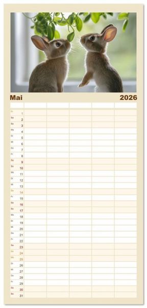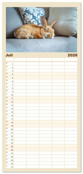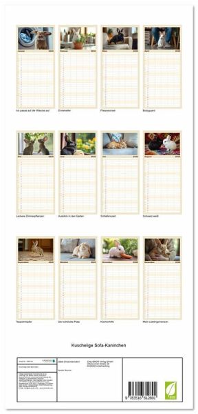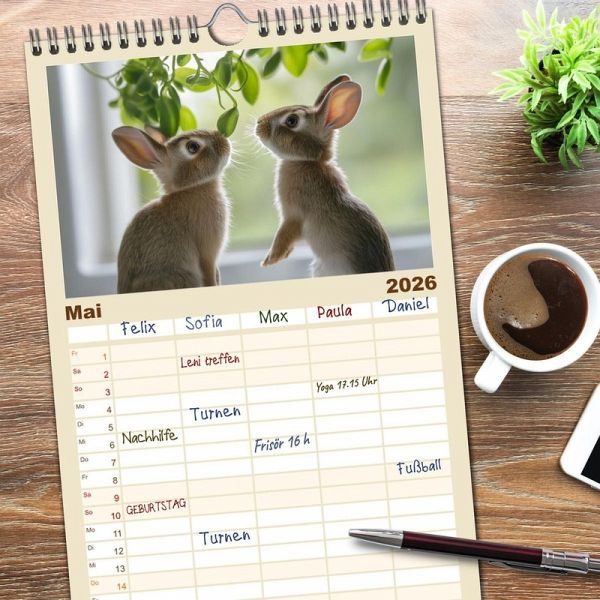 PRAKTISCH - übersichtlicher Familienkalender mit 5 Spalten für bis zu 5 Personen für mehr Struktur im Alltag - so bleiben alle Termine im Blick!ÜBERSICHTLICH - mit farblich getrennten Wochen- und Feiertagen. Die einzelnen Felder bieten genügend Platz für Eintragungen. So macht Organisieren Spaß!FANTASTISCHE BILDER - Dieser Planer ist nicht nur eine nützliche Hilfe im Alltag, sondern schmückt gleichzeitig Ihr Zuhause. Ideal auch als Geschenk.FÜR ALLE STIFTE GEEIGNET - ganz egal, ob Sie lieber mit Kugelschreiber oder Bleistift schreiben.NACHHALTIG - deutliche Abfallreduzierung durch bedarfsgerechte Einzelstückfertigung, umweltfreundliches FSC-zertifiziertes Papier, Produktion in Deutschland, klimabewusste Logistik.Ein gemütlicher Kalender mit Hauskaninchen, die kuscheln, entspannen und das Sofa erobern von Autor(in): Kerstin Waurick
