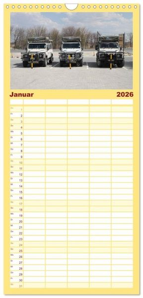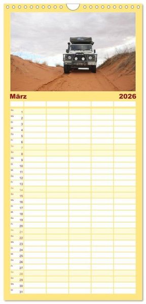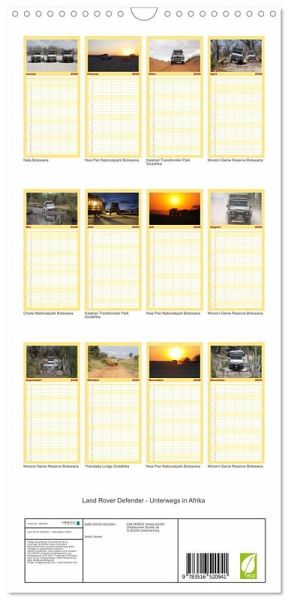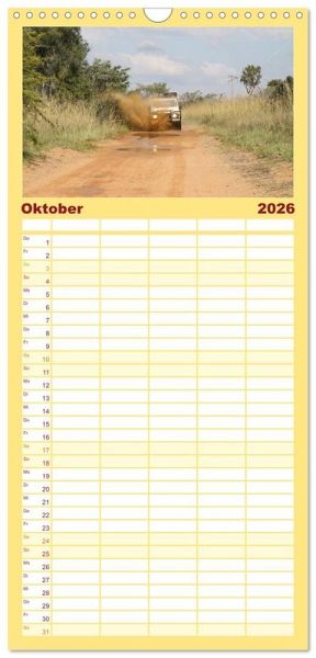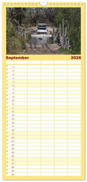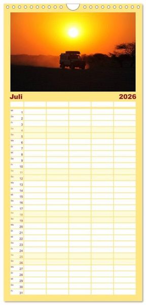 PRAKTISCH - übersichtlicher Familienkalender mit 5 Spalten für bis zu 5 Personen für mehr Struktur im Alltag - so bleiben alle Termine im Blick!ÜBERSICHTLICH - mit farblich getrennten Wochen- und Feiertagen. Die einzelnen Felder bieten genügend Platz für Eintragungen. So macht Organisieren Spaß!FANTASTISCHE BILDER - Dieser Planer ist nicht nur eine nützliche Hilfe im Alltag, sondern schmückt gleichzeitig Ihr Zuhause. Ideal auch als Geschenk.FÜR ALLE STIFTE GEEIGNET - ganz egal, ob Sie lieber mit Kugelschreiber oder Bleistift schreiben.NACHHALTIG - deutliche Abfallreduzierung durch bedarfsgerechte Einzelstückfertigung, umweltfreundliches FSC-zertifiziertes Papier, Produktion in Deutschland, klimabewusste Logistik.4x4 in Afrika, der Defender im afrikanischen Busch von Autor(in): Stefan Sander