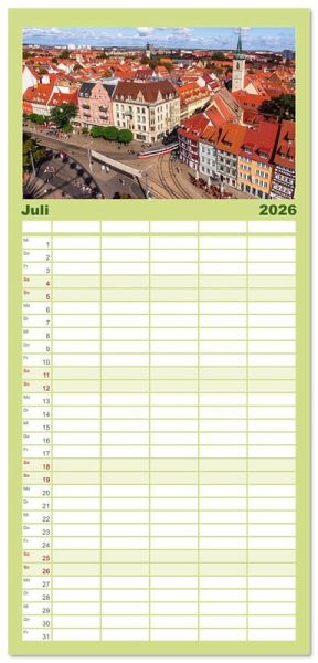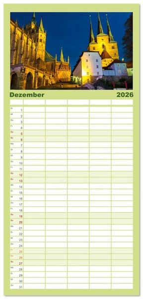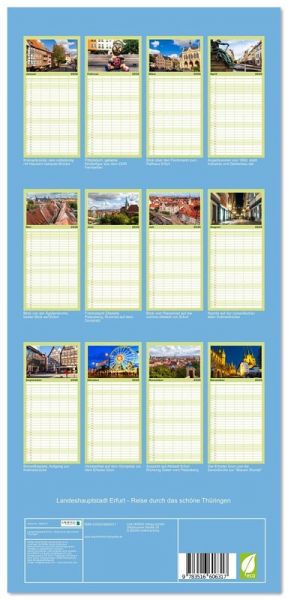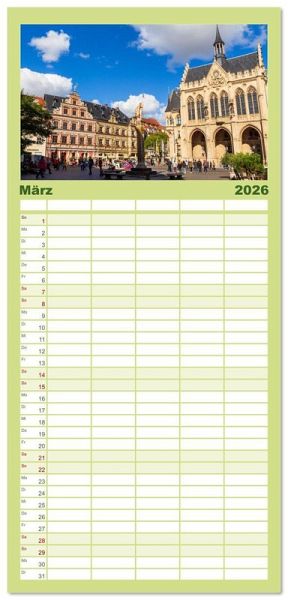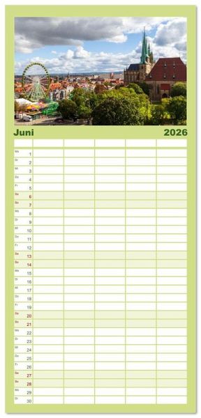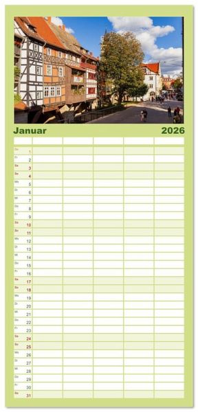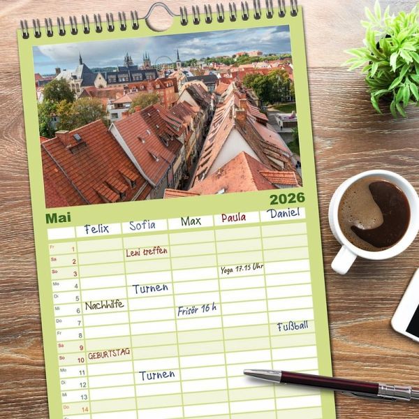 PRAKTISCH - übersichtlicher Familienkalender mit 5 Spalten für bis zu 5 Personen für mehr Struktur im Alltag - so bleiben alle Termine im Blick!ÜBERSICHTLICH - mit farblich getrennten Wochen- und Feiertagen. Die einzelnen Felder bieten genügend Platz für Eintragungen. So macht Organisieren Spaß!FANTASTISCHE BILDER - Dieser Planer ist nicht nur eine nützliche Hilfe im Alltag, sondern schmückt gleichzeitig Ihr Zuhause. Ideal auch als Geschenk.FÜR ALLE STIFTE GEEIGNET - ganz egal, ob Sie lieber mit Kugelschreiber oder Bleistift schreiben.NACHHALTIG - deutliche Abfallreduzierung durch bedarfsgerechte Einzelstückfertigung, umweltfreundliches FSC-zertifiziertes Papier, Produktion in Deutschland, klimabewusste Logistik.Erfurt: Das Herz Thüringens in Bildern von Autor(in): drachenkind-fotografie