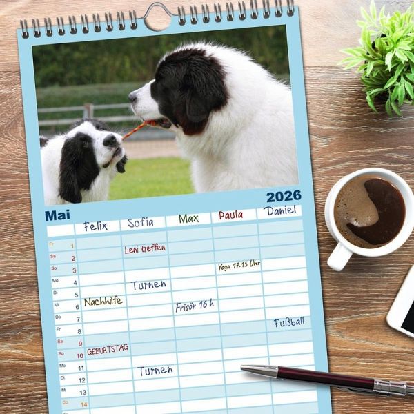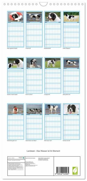 PRAKTISCH - übersichtlicher Familienkalender mit 5 Spalten für bis zu 5 Personen für mehr Struktur im Alltag - so bleiben alle Termine im Blick!ÜBERSICHTLICH - mit farblich getrennten Wochen- und Feiertagen. Die einzelnen Felder bieten genügend Platz für Eintragungen. So macht Organisieren Spaß!FANTASTISCHE BILDER - Dieser Planer ist nicht nur eine nützliche Hilfe im Alltag, sondern schmückt gleichzeitig Ihr Zuhause. Ideal auch als Geschenk.FÜR ALLE STIFTE GEEIGNET - ganz egal, ob Sie lieber mit Kugelschreiber oder Bleistift schreiben.NACHHALTIG - deutliche Abfallreduzierung durch bedarfsgerechte Einzelstückfertigung, umweltfreundliches FSC-zertifiziertes Papier, Produktion in Deutschland, klimabewusste Logistik.Landseer sind eine besondere Hunderasse die besonders das Wasser lieben und dort in ihrem Element sind. von Autor(in): Barbara Mielewczyk