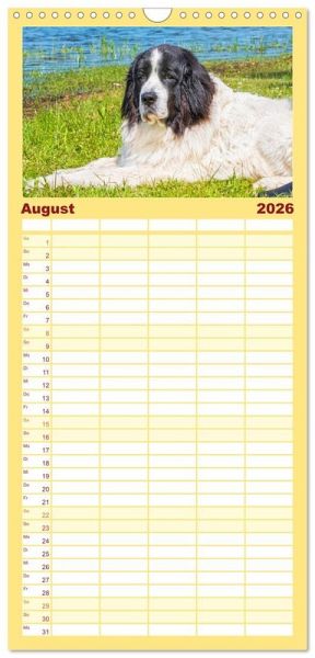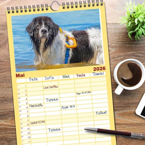 PRAKTISCH - übersichtlicher Familienkalender mit 5 Spalten für bis zu 5 Personen für mehr Struktur im Alltag - so bleiben alle Termine im Blick!ÜBERSICHTLICH - mit farblich getrennten Wochen- und Feiertagen. Die einzelnen Felder bieten genügend Platz für Eintragungen. So macht Organisieren Spaß!FANTASTISCHE BILDER - Dieser Planer ist nicht nur eine nützliche Hilfe im Alltag, sondern schmückt gleichzeitig Ihr Zuhause. Ideal auch als Geschenk.FÜR ALLE STIFTE GEEIGNET - ganz egal, ob Sie lieber mit Kugelschreiber oder Bleistift schreiben.NACHHALTIG - deutliche Abfallreduzierung durch bedarfsgerechte Einzelstückfertigung, umweltfreundliches FSC-zertifiziertes Papier, Produktion in Deutschland, klimabewusste Logistik.Landseer - diese faszinierenden Hunde präsentiert die Tierfotografin Sigrid Starick in 13 bezaubernden Bildern. von Autor(in): SiSta-Tierfoto