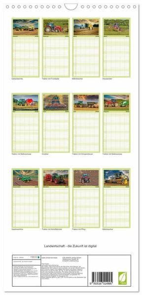 PRAKTISCH - übersichtlicher Familienkalender mit 5 Spalten für bis zu 5 Personen für mehr Struktur im Alltag - so bleiben alle Termine im Blick!ÜBERSICHTLICH - mit farblich getrennten Wochen- und Feiertagen. Die einzelnen Felder bieten genügend Platz für Eintragungen. So macht Organisieren Spaß!FANTASTISCHE BILDER - Dieser Planer ist nicht nur eine nützliche Hilfe im Alltag, sondern schmückt gleichzeitig Ihr Zuhause. Ideal auch als Geschenk.FÜR ALLE STIFTE GEEIGNET - ganz egal, ob Sie lieber mit Kugelschreiber oder Bleistift schreiben.NACHHALTIG - deutliche Abfallreduzierung durch bedarfsgerechte Einzelstückfertigung, umweltfreundliches FSC-zertifiziertes Papier, Produktion in Deutschland, klimabewusste Logistik.Hightech in landwirtschaftlichen Maschinen. von Autor(in): Peter Roder