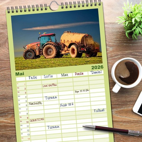 PRAKTISCH - übersichtlicher Familienkalender mit 5 Spalten für bis zu 5 Personen für mehr Struktur im Alltag - so bleiben alle Termine im Blick!ÜBERSICHTLICH - mit farblich getrennten Wochen- und Feiertagen. Die einzelnen Felder bieten genügend Platz für Eintragungen. So macht Organisieren Spaß!FANTASTISCHE BILDER - Dieser Planer ist nicht nur eine nützliche Hilfe im Alltag, sondern schmückt gleichzeitig Ihr Zuhause. Ideal auch als Geschenk.FÜR ALLE STIFTE GEEIGNET - ganz egal, ob Sie lieber mit Kugelschreiber oder Bleistift schreiben.NACHHALTIG - deutliche Abfallreduzierung durch bedarfsgerechte Einzelstückfertigung, umweltfreundliches FSC-zertifiziertes Papier, Produktion in Deutschland, klimabewusste Logistik.Die Arbeit mit landwirtschaftlichen Maschinen auf dem Bauernhof. von Autor(in): Peter Roder