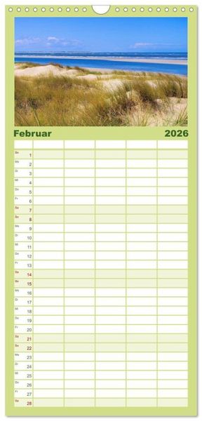 PRAKTISCH - übersichtlicher Familienkalender mit 5 Spalten für bis zu 5 Personen für mehr Struktur im Alltag - so bleiben alle Termine im Blick!ÜBERSICHTLICH - mit farblich getrennten Wochen- und Feiertagen. Die einzelnen Felder bieten genügend Platz für Eintragungen. So macht Organisieren Spaß!FANTASTISCHE BILDER - Dieser Planer ist nicht nur eine nützliche Hilfe im Alltag, sondern schmückt gleichzeitig Ihr Zuhause. Ideal auch als Geschenk.FÜR ALLE STIFTE GEEIGNET - ganz egal, ob Sie lieber mit Kugelschreiber oder Bleistift schreiben.NACHHALTIG - deutliche Abfallreduzierung durch bedarfsgerechte Einzelstückfertigung, umweltfreundliches FSC-zertifiziertes Papier, Produktion in Deutschland, klimabewusste Logistik.Impressionen der Nordseeinsel Langeoog von Autor(in): Thomas Polske
