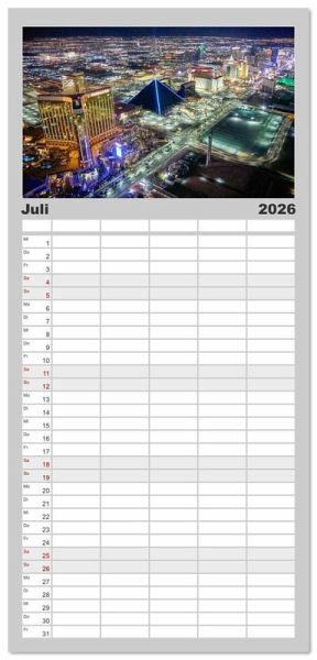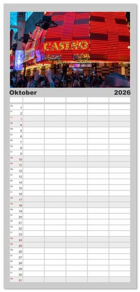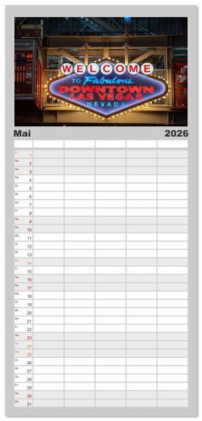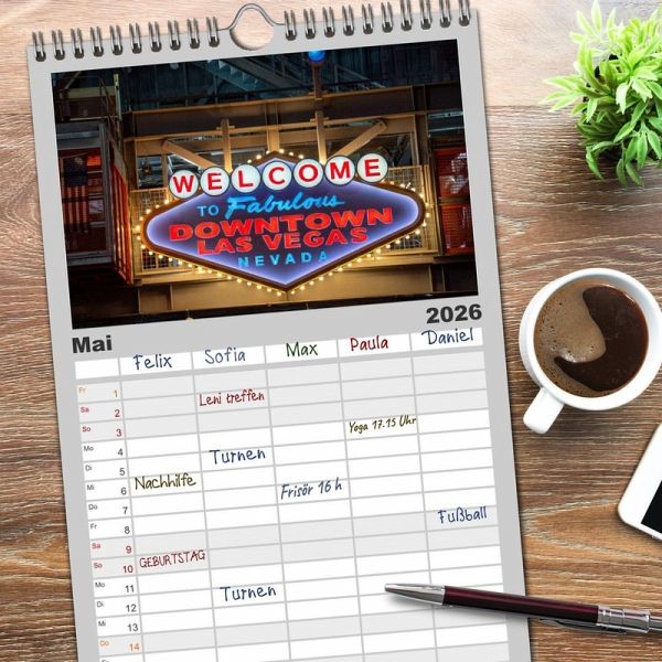 PRAKTISCH - übersichtlicher Familienkalender mit 5 Spalten für bis zu 5 Personen für mehr Struktur im Alltag - so bleiben alle Termine im Blick!ÜBERSICHTLICH - mit farblich getrennten Wochen- und Feiertagen. Die einzelnen Felder bieten genügend Platz für Eintragungen. So macht Organisieren Spaß!FANTASTISCHE BILDER - Dieser Planer ist nicht nur eine nützliche Hilfe im Alltag, sondern schmückt gleichzeitig Ihr Zuhause. Ideal auch als Geschenk.FÜR ALLE STIFTE GEEIGNET - ganz egal, ob Sie lieber mit Kugelschreiber oder Bleistift schreiben.NACHHALTIG - deutliche Abfallreduzierung durch bedarfsgerechte Einzelstückfertigung, umweltfreundliches FSC-zertifiziertes Papier, Produktion in Deutschland, klimabewusste Logistik.Las Vegas in all seiner Neonpracht: Casinos, Nachtleben und spektakuläre Lichterwelten. Ideal für USA-Fans und Liebhaber des Nachtlebens von Autor(in): Michael Bihlmayer
