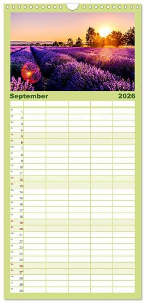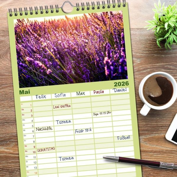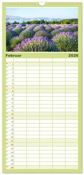 PRAKTISCH - übersichtlicher Familienkalender mit 5 Spalten für bis zu 5 Personen für mehr Struktur im Alltag - so bleiben alle Termine im Blick!ÜBERSICHTLICH - mit farblich getrennten Wochen- und Feiertagen. Die einzelnen Felder bieten genügend Platz für Eintragungen. So macht Organisieren Spaß!FANTASTISCHE BILDER - Dieser Planer ist nicht nur eine nützliche Hilfe im Alltag, sondern schmückt gleichzeitig Ihr Zuhause. Ideal auch als Geschenk.FÜR ALLE STIFTE GEEIGNET - ganz egal, ob Sie lieber mit Kugelschreiber oder Bleistift schreiben.NACHHALTIG - deutliche Abfallreduzierung durch bedarfsgerechte Einzelstückfertigung, umweltfreundliches FSC-zertifiziertes Papier, Produktion in Deutschland, klimabewusste Logistik.Wie in der Provence. von Autor(in): Happy Monkey